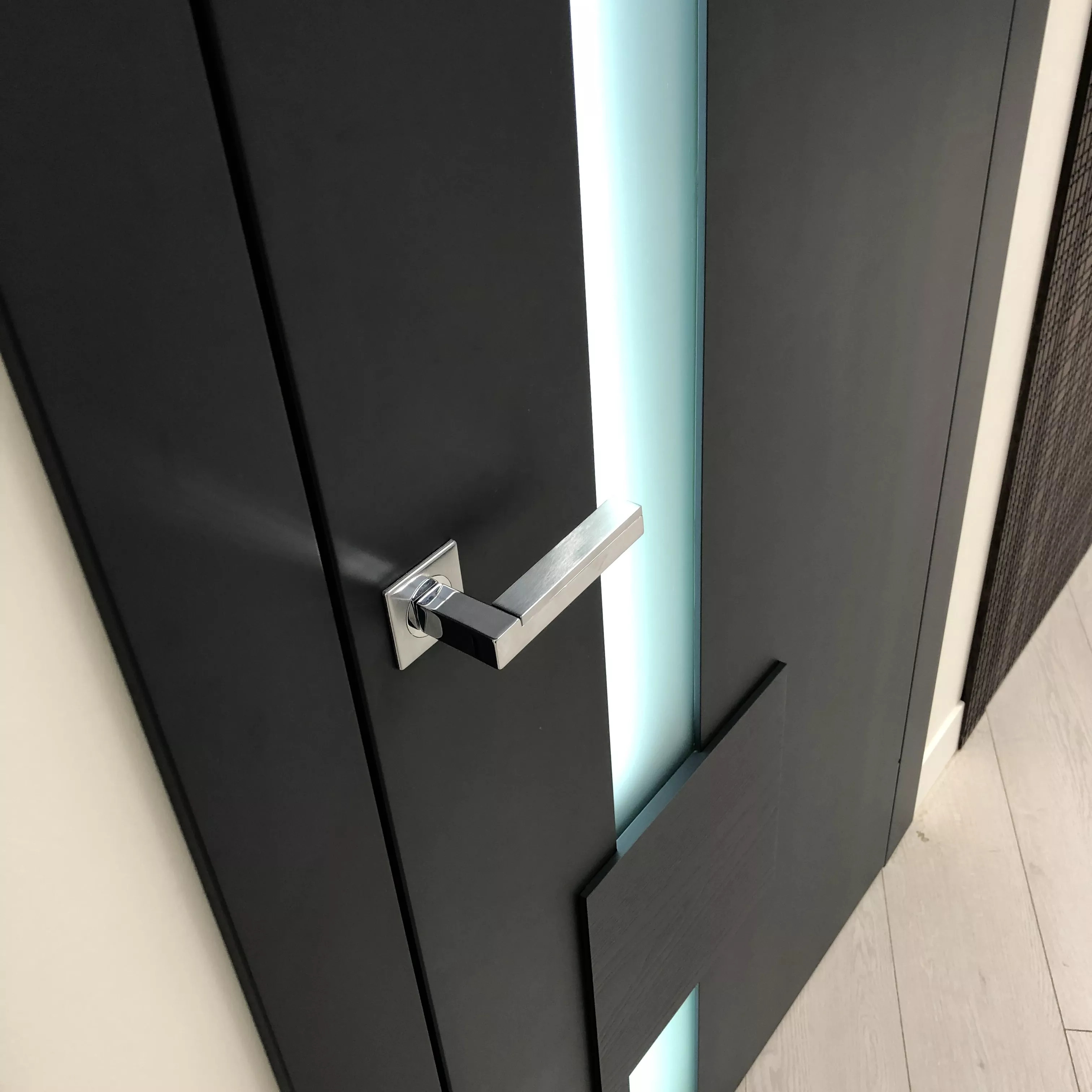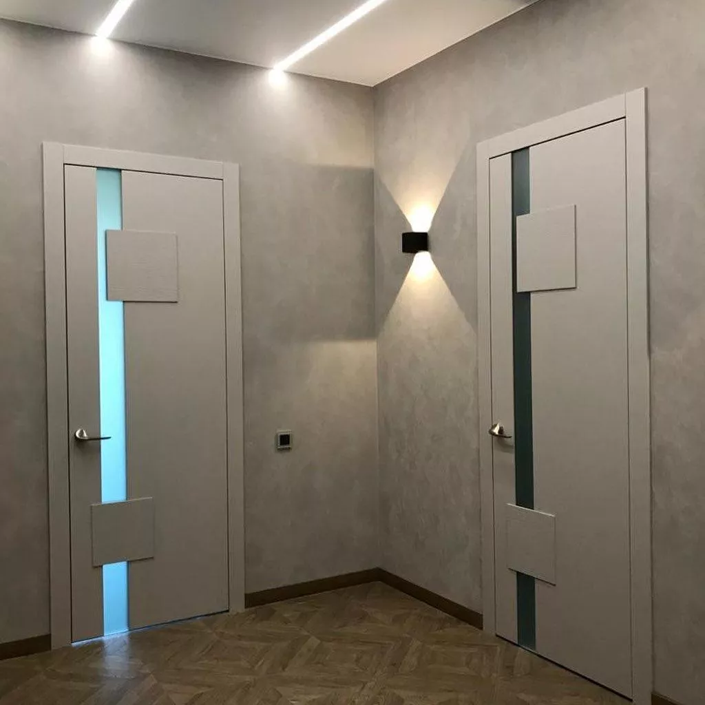 Уникальная, неповторимая линейка, выполняемая в гладкой эмали со шпонированными  элементами. Прямым линиям мы придали объем и разную текстуру, добавили света в виде стеклянных вставок. Коллекцию можно окрасить по палитрам RAL или NCS, а широкий размерный ряд позволит установить двери как в просторный лофт, так и в уютную небольшую студию.